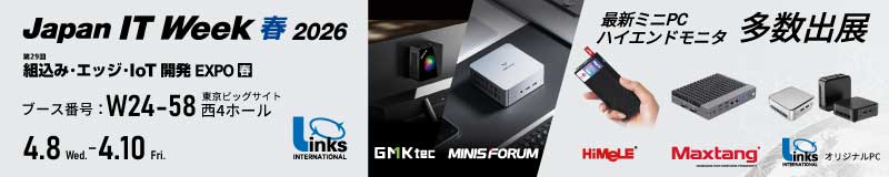 2026年4月3日 お知らせ Japan IT Week 春2026「第29回 組込み・エッジ・IoT開発EXPO」へミニPCブランド出展 株式会社リンクスインターナショナル(本社:東京都千代田区、代表取締役:川島義之)は、2026年4月8日~10日に東京ビックサイトで開催されるJapan IT Week 春2026「第29回 組込み・エッジ・IoT開発EX […]