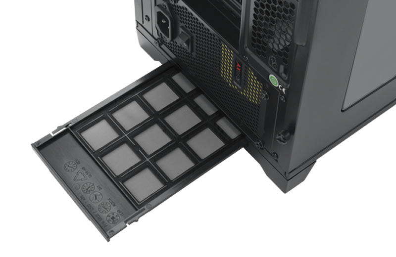 ケースフロントと電源ユニット搭載部にダストフィルタ搭載しています。ケース内部に溜まりやすいチリや埃の侵入を防ぎます。簡単に取り外すことが可能でメンテナンス性にも優れています。