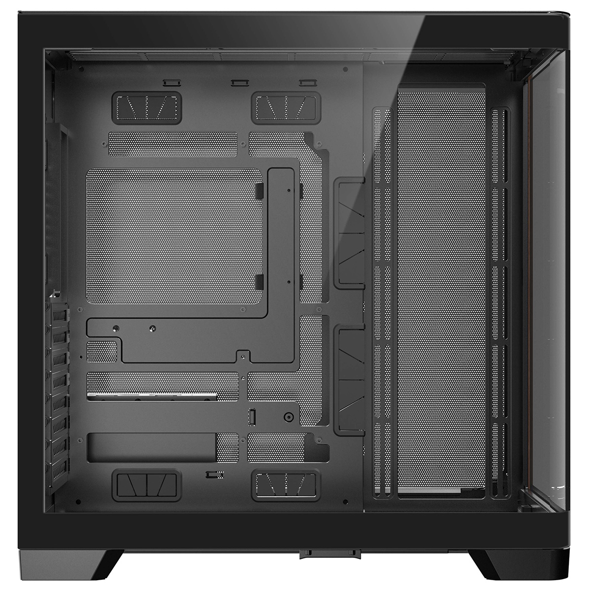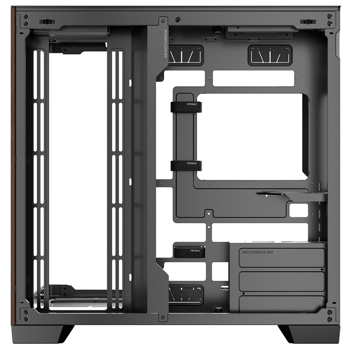 C8 Curve Woodは、フロントとサイドが一体型になった強化ガラスパネルと木製ウォルナット材のフロントパネルを搭載し、右側はメッシュのスチールパネルを搭載したE-ATXマザーボード対応のフルタワーPCケースです。最大120 mmファンを10基搭載することができ、フロント、サイド一体型強化ガラスパネルは繋ぎ目が無く表面にネジ穴を設けないことで美観と冷却性を両立します。最大で360 mmの大型ラジエータにも対応し、最大440 mmを確保した拡張カードスペースと、高さ175 mmまでのCPUクーラーを搭載でき2.5インチ専用ベイを2台、3.5インチベイを1台備えています。