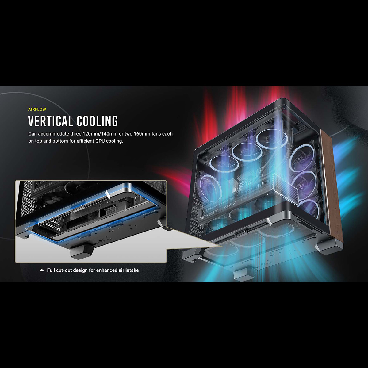 GPUを直接冷却する120 mm、140 mm、160 mmファンをボトムに搭載可能