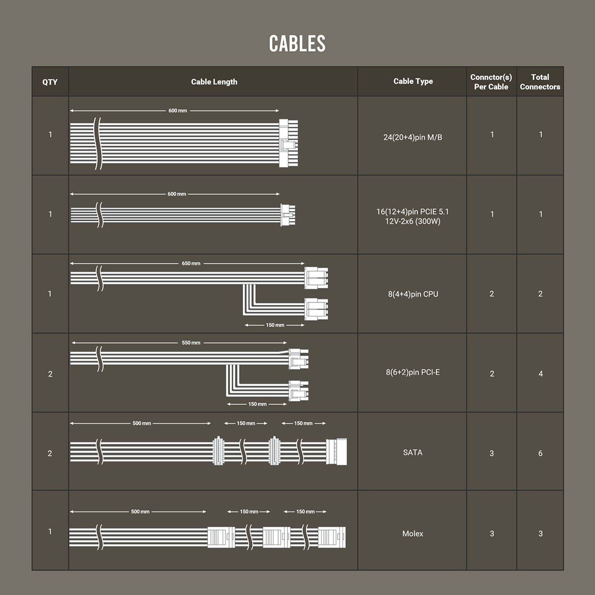 | 16ピンPCI-E 5.1(300W)電源コネクタ約600mm (1本に1つの16ピンPCI-E電源) | 1 |