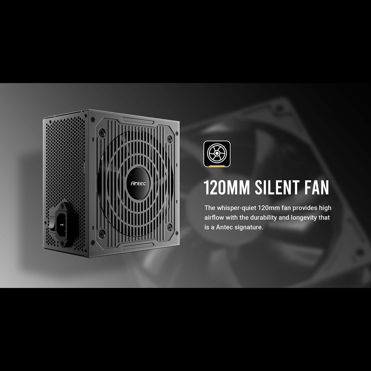 - 静音性に優れた120 mmファン搭載