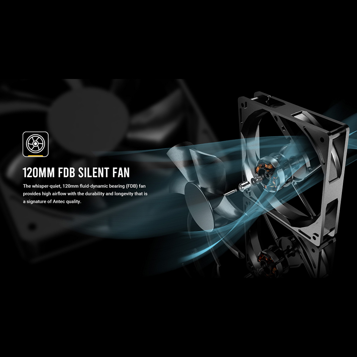 - 静音性に優れた120 mmファン搭載