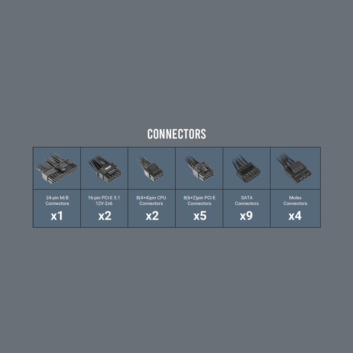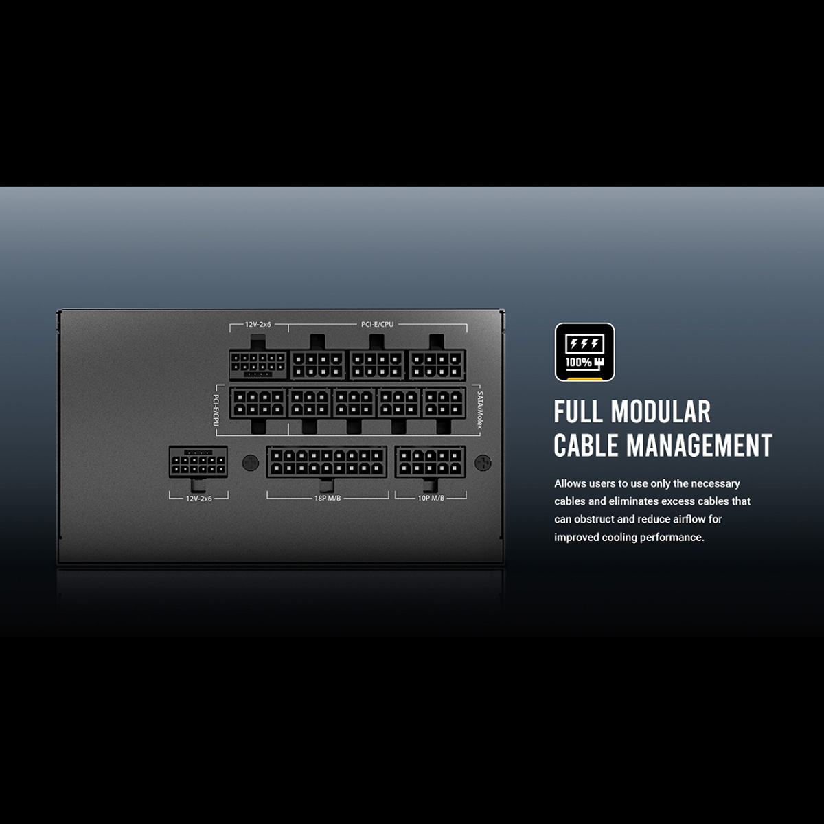- ATX 3.1、PCIe 5.1に対応したフルモジュラー式電源