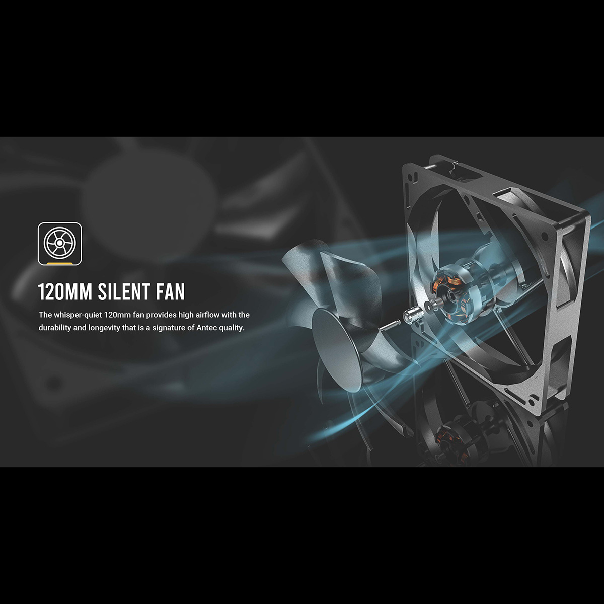 - 静音性に優れた120 mmファン搭載