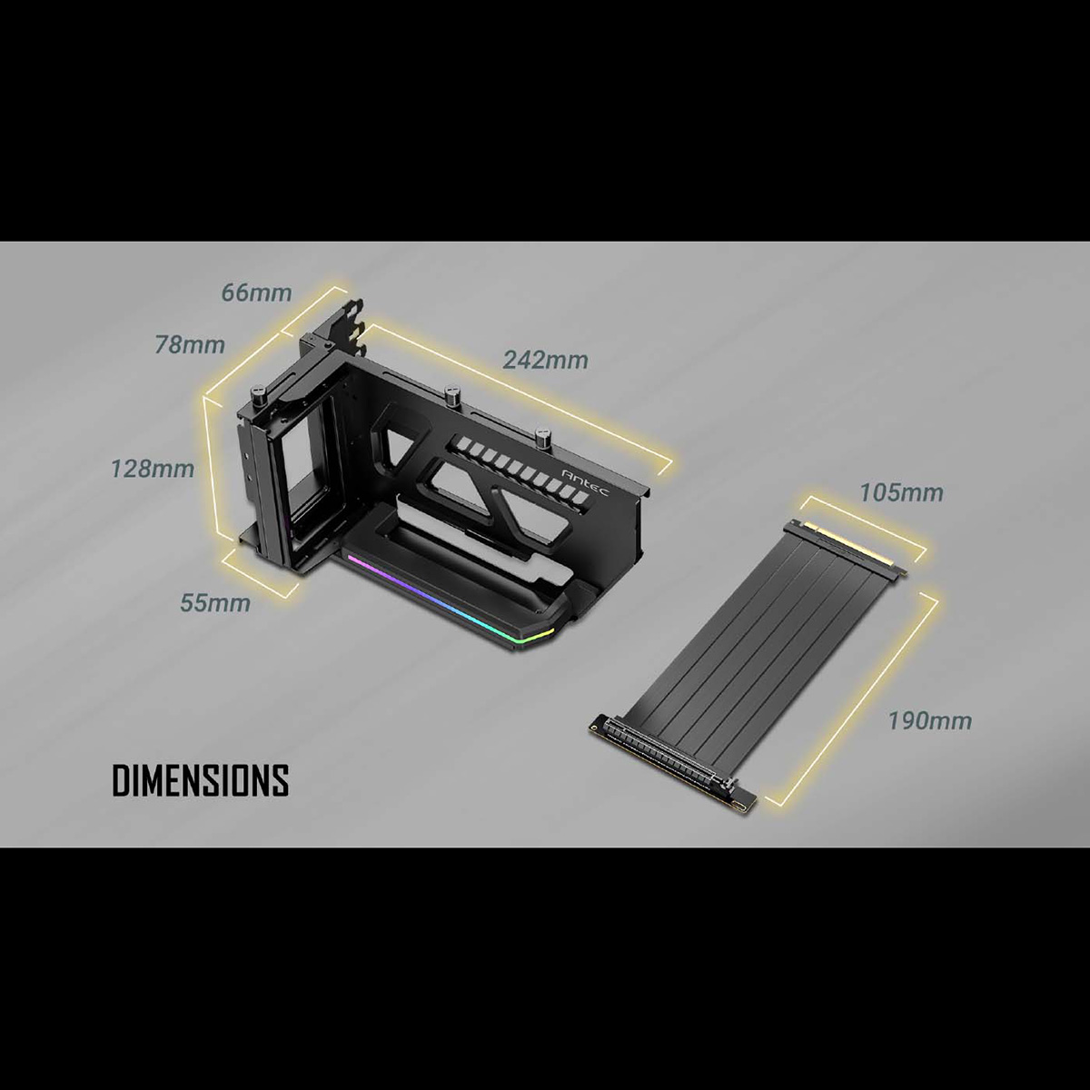 SHIFT ARGBは、Antec製PCケースに対応する可動式のグラフィックカード縦置きブラケットとライザーケーブルが一体になった製品です。最大3スロットのグラフィックカードを対応ケースのPCIeスロットにしっかりと固定し、ヒートシンクデザインやライティングを最大限に見せることができます。ライザーケーブル部分を左右に調整できる可動式ブラケットを搭載し、より多くのAntec製PCケースに対応します。ブラケット部にRGB LEDを搭載しアドレッサブル3ピンに対応しています。PCIe 4.0接続、RTX 4090に対応し、ライザーケーブルは190 mm長を採用しています。ブラックとホワイトの2色をラインアップ。