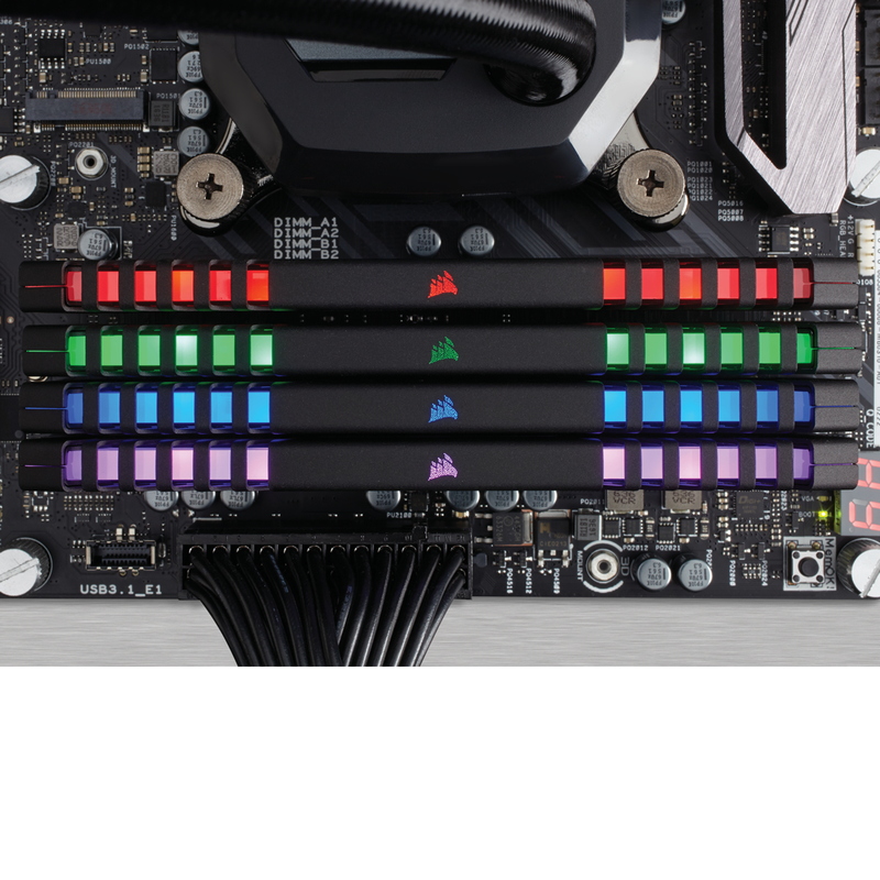 RGB LEDライトバーのイルミネーションは専用ソフトウェア「CORSAIR LINK」によってフルカスタマイズが可能です。システムカラーやその時の雰囲気に合わせてドレスアップすることができます。また、メモリモジュールのモニタリング機能を備え、各モジュールの動作状態をリアルタイムで確認することができます。