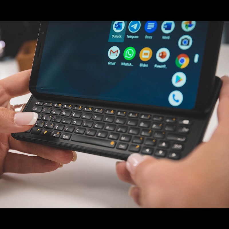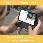 明瞭なクリック感のQWERTY物理キーボードを搭載し、メール、SNSなどの文書入力をどこでも快適に行えます。スクリーンキーボードが表示されないため、返信元の文章や画像、動画を見ながら入力できます。更にAndroidの画面分割機能を活用すれば、Youtubeの配信を見ながらリアルタイムにツイートするといった使い方が可能です。バックライト内蔵で、暗い場所でも正確なタイピングをサポート。