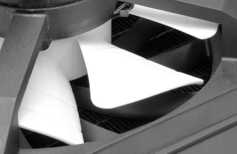 ファンとラジエータの間に指向性ブレイドを備えています。ファンが作り出すエアフローを周囲に逃がさず、無駄なくラジエータに吹き付けます。ファン回転数とファンノイズを抑えながら、より最適なエアフローを作り出します。