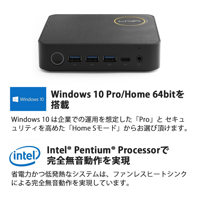 - Windows 10 Pro/Homeを搭載した小型デスクトップパソコン