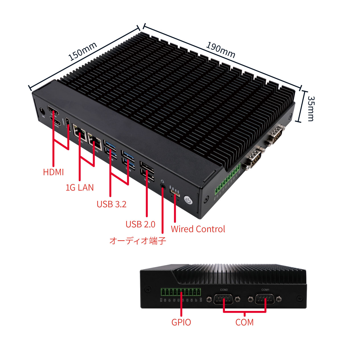 • 35 mmの薄型ファンレス筐体