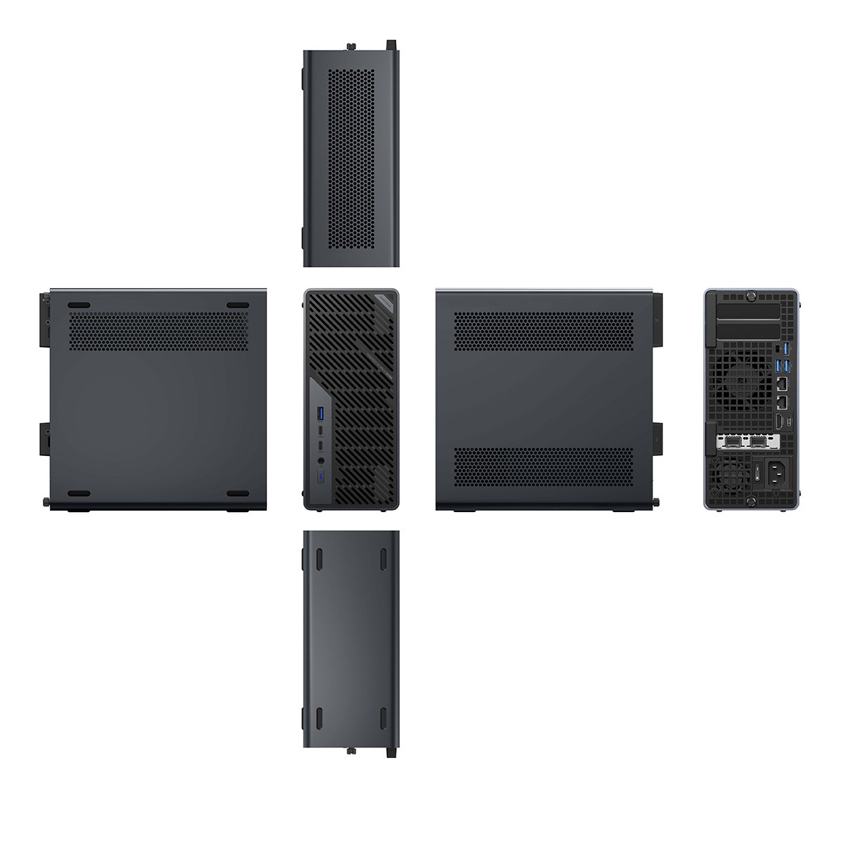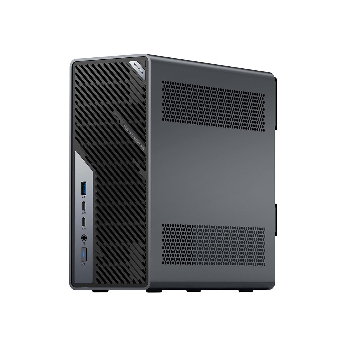 アクセスしやすい本体正面のUSB 3.2 Gen2やUSB4端子を始め、背面には25 Gb対応のデュアルSFP+ポートやUSB4、2.5Gb LANポートなど、通常のミニPCを凌駕する超高速インターフェースを多数搭載しています。