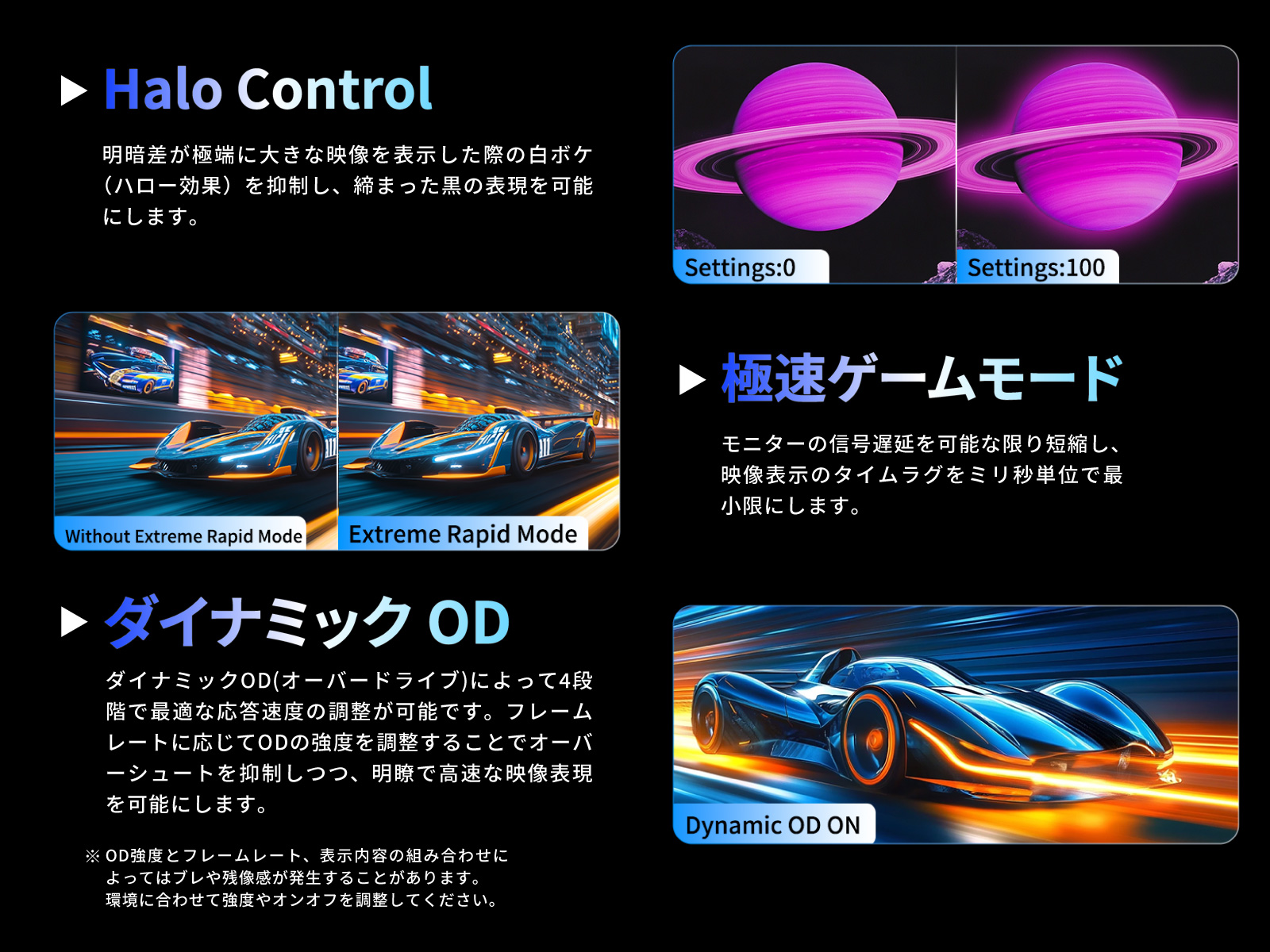 - 黒挿入技術でブレを無くすDyDs TECH 2.0